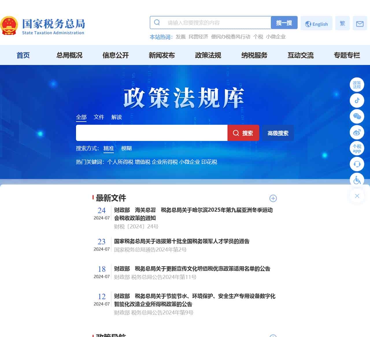 | 2024-07 | 国家税务总局关于选拔第十批全国税务领军人才学员的通告 |