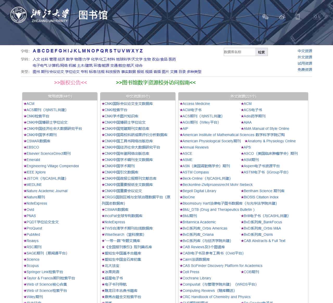 关于数据库导航 – 浙江大学图书馆特别声明
