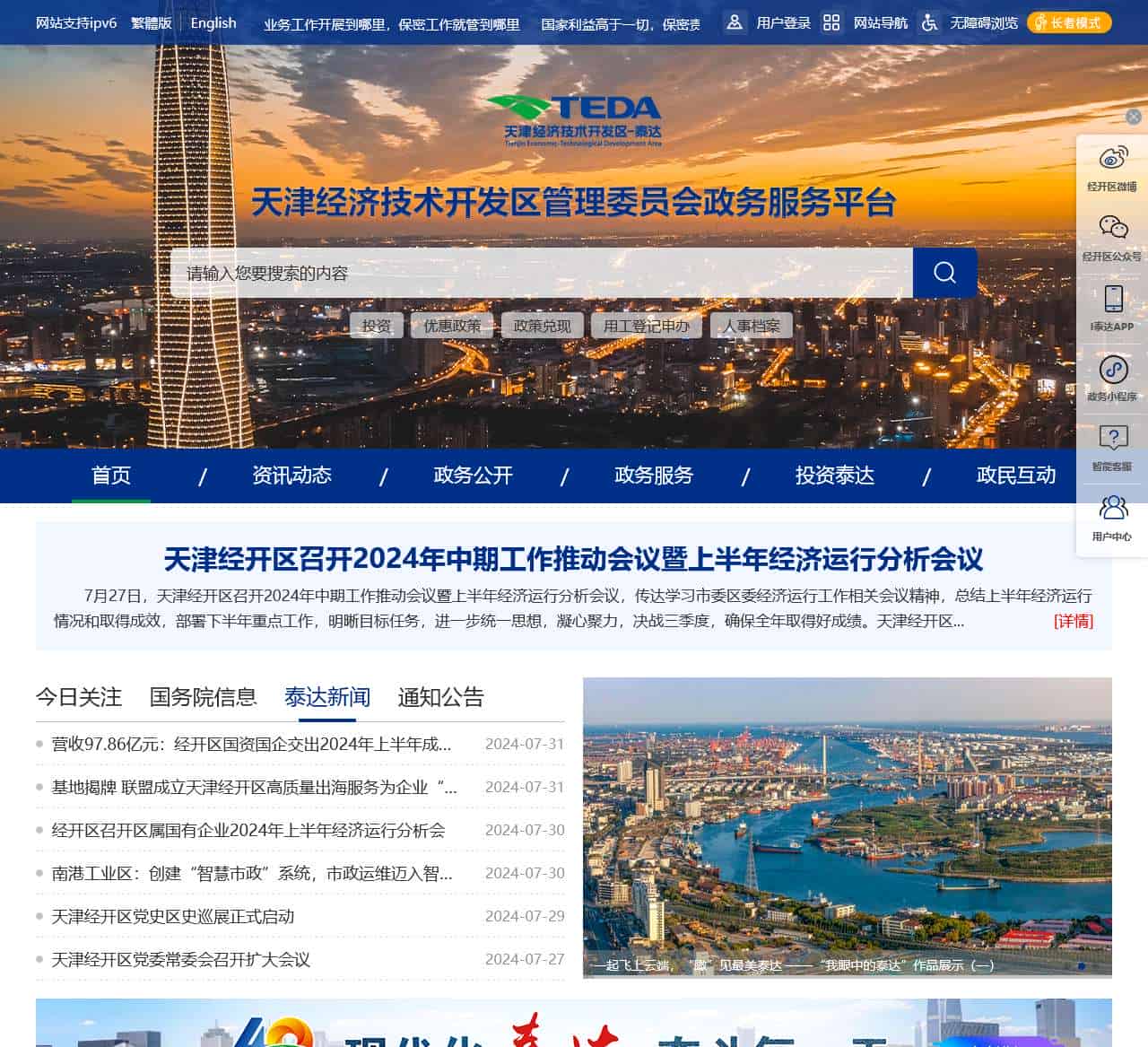 | 资讯动态 | 今日关注 | 天津新闻 | 泰达政务 | 投资动态 | 图片新闻 | 视频新闻 | 视频号 | 媒体聚焦 | 其他信息 | 专题区 |