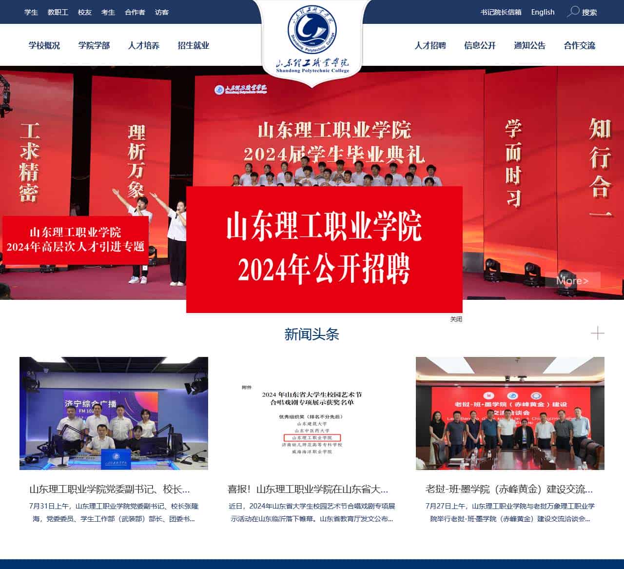 | 通知公告 | 山东理工职业学院党委副书记、校长张隆海带队走进济宁广播电视台《政风行风热线》栏目、喜报!山东理工职业学院在山东省大学生校园艺术节合唱戏剧专项展示活动中斩获佳绩、老挝-班·墨学院(赤峰黄金)建设交流洽谈会在山东理工职业学院召开、鲁喀专项|理工学子支教纪实周记、山东省内陆渔业船员管理工作调研及技术指导会议在山东理工职业学院召开、跨越4520公里,让爱飞越万水千山、山东理工职业学院马克思主义学院教师喜获第三届全省学校思想政治理论课教学比赛二等奖、鲁喀专项|山东理工职业学院学子支教纪实周记、震撼首发!山东理工职业学院2024年AI招生宣传片、尼山世界儒学中心理事会理事长靳诺前往山东理工职业学院调研思政课建设情况、“中文+职业技能”培训出实效,开辟属地人才培养新路径、2024年山东理工职业学院发布专本硕连读专业(中德合作办学)招生简章、山东理工职业学院当选国家有色金属行业产教融合共同体理事单位、山东理工职业学院牵头成立山东省境外办学高校联盟、走在前!海外“班·墨学院”建设迈出新步伐、全省职业教育海外“班·墨学院”建设工作交流活动举行、“强国志 青春说”——这堂音乐思政课“声”入人心、让思政课“动”起来、“活”起来、从“121”开始到“321”结束、青春筑梦西部,志愿书写华章——西部计划志愿者闫子玉的奉献之旅 |