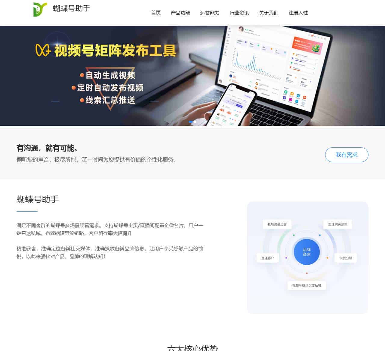 markdown| **项目** | **内容** | **备注** | | -------- | -------- | -------- | | **蝴蝶号助手** | 首页 | | | | 产品功能 | | | | 运营能力 | | | | 行业资讯 | | | | 关于我们 | | | | 注册入驻 | | | **视频号** | 分享一下视频号的几大变现方式 | more+ | | | 分享一下视频号的几大变现方式 | more+ | | | 视频号账号质量不符合怎么解决 | more+ | | **网站首页** | 关于我们 | | | | 微信咨询 | | | | 关于我们 | 打开微信 | | **网站首页** | 关于我们 | | | | 微信咨询 | | | | 关于我们 | 打开微信 |