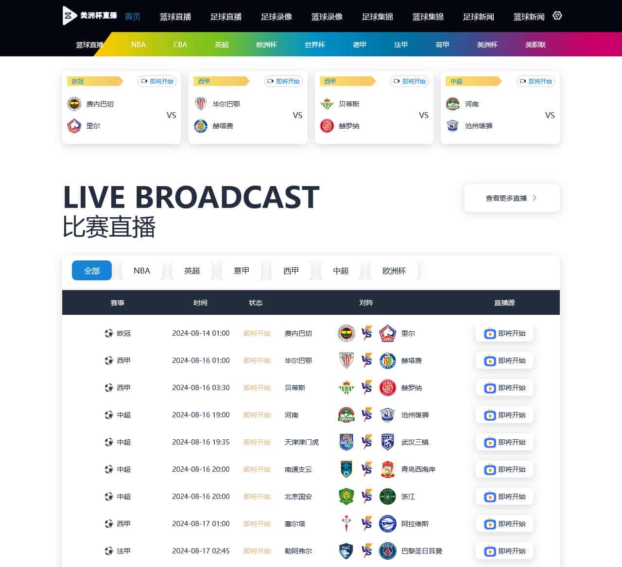 | 即将开始 | 对阵 | 联赛 |