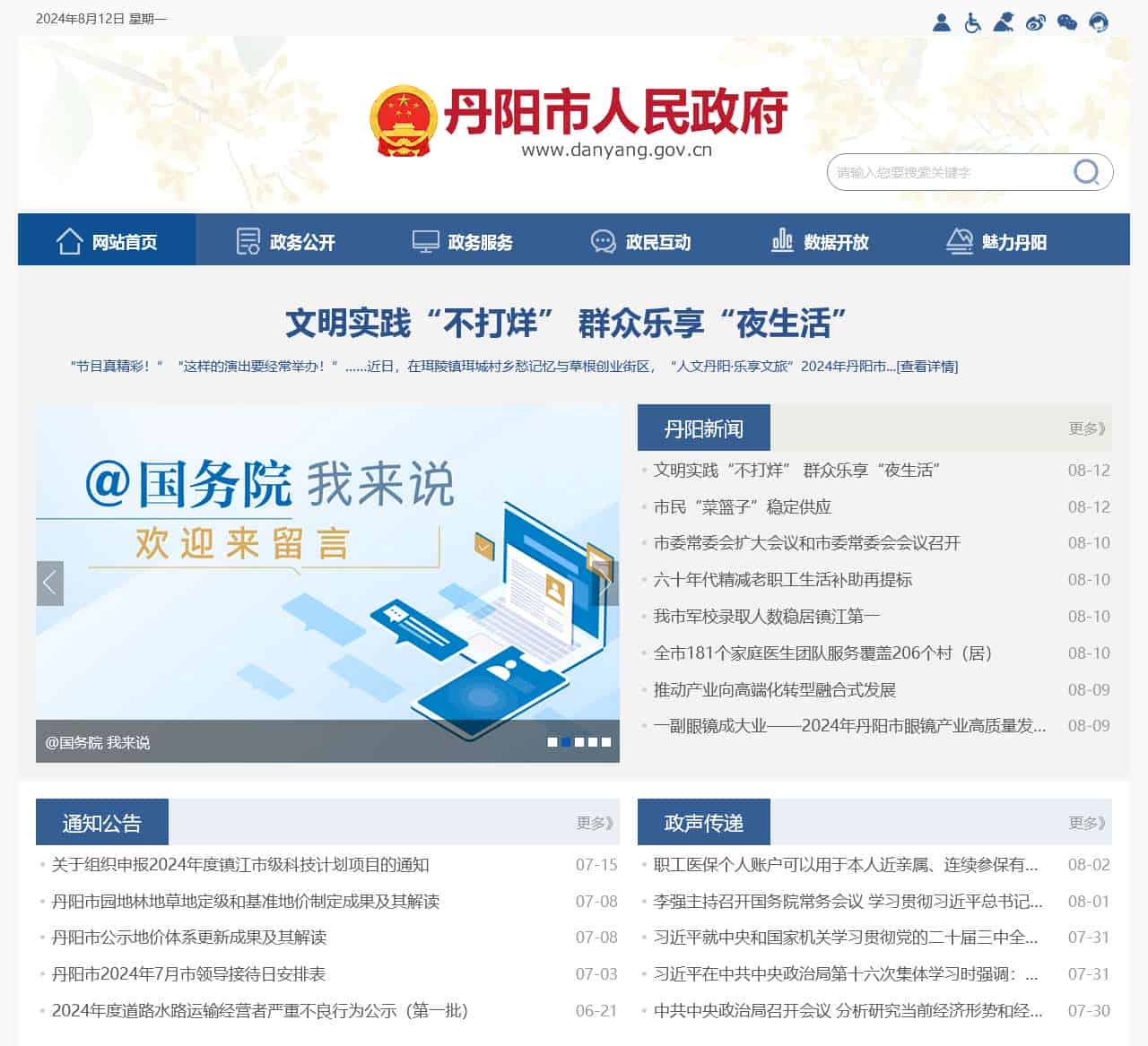 | 网站首页 | 政务公开 政务服务 政民互动 数据开放 魅力丹阳 文明实践“不打烊” 群众乐享“夜生活” [查看详情] |