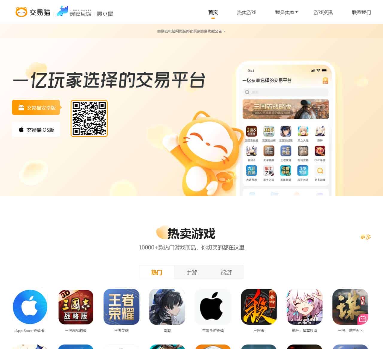 交易猫是国内专业安全的手游交易平台,提供网游交易、账号估值、淘手游账号、装备道具交易、买号卖号、游戏代练、苹果代充值、游戏充值、首充号等服务,手游交易就上交易猫官网!