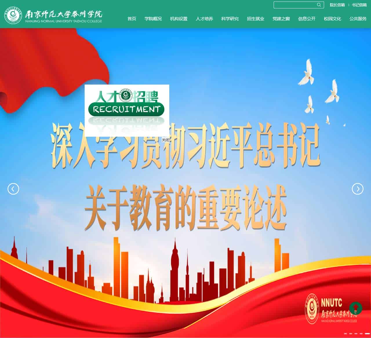 plaintext| 关闭 | 院长信箱 | 书记信箱 | |-------------|-----------|-----------| | **首页** | | | | **学院概况** | | | | - 学院简介 | | | | - 现任领导 | | | | - 校园标识 | | | | - 校园风光 | | | | - 校园建设 | | | | **机构设置** | | | | - 教学单位 | | | | - 管理部门 | | | | - 群团组织 | | | | - 直属单位 | | | | - 科技与社会服务 | | | | - 其他机构 | | | | **人才培养** | | | | - 本科教育 | | | | - 研究生教育 | | | | **科学研究** | | | | | | | | **招生就业** | | | | - 本科招生 | | | | - 就业创业 | | | | **党建之窗** | | | | - 理论学习 | | | | - 党建工作 | | | | - 组织建设 | | | | - 党校工作 | | | | - 纪检工作 | | | | **信息公开** | | | | - 公开指南 | | | | - 公开目录 | | | | **校园文化** | | | | - 厚生网 | | | | - 教工之家 | | | | - 泰苑青年 | | | | - PU平台 | | | | **公共服务** | | | | - 智慧门户平台 | | | | - 办事大厅平台 | | | | - 综合教务系统 | | | | - 图书检索系统 | | | | - 电子邮件系统 | | | | - 常用信息查询 | | | | - 迎新服务网站 | | | | - 学生缴费平台 | | | | - VPN接入服务 | | | | - 用户安全中心 | | | | **更多** | | | --- | 日期 | 内容 | |--------|-------------------------------------------------------------------------------------------------------------| | 07-05 | 2024年暑期后勤保障工作纪实:暑假伊始,校园里较往日少了一份喧嚣,多了一份宁静,但在这宁静的背后,还有另一番忙碌的景象。... | | 08-04 | 我校学子在第九届全国大学生生命科学竞赛中获得佳绩:7月30日,第九届全国大学生生命科学竞赛圆满落幕。我校5支参赛团队... | | 08-01 | 我校在2024年(第17届)中国大学生计算机设计大赛全国总决赛中喜获佳绩:近日,信息工程学院学生参与了第十七届中国大学生计算机设计大赛... | | 07-24 | 中国矿业大学徐海学院来我校调研交流:7月24日上午,中国矿业大学徐海学院副院长徐海波一行来我校调研交流。... | | 07-21 | 校领导检查指导暑期维修改造工程并看望慰问一线工作人员:高温天气持续,热浪席卷凤城。7月19日上午,南京师范大学党委副书记... | | 07-20 | 我校学子在第二十一届全国大学生信息安全与对抗技术竞赛中喜获全国一等奖:近日,信息工程学院学生参与了第二十一届全国大学生信息安全... |
