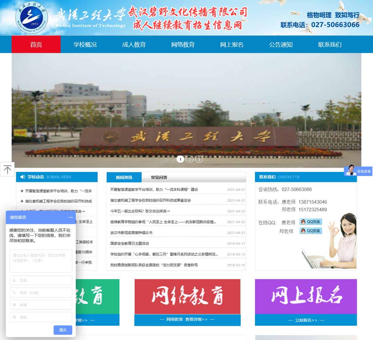 武汉工程大学成人继续教育招生信息网,招生热线027-50663066.