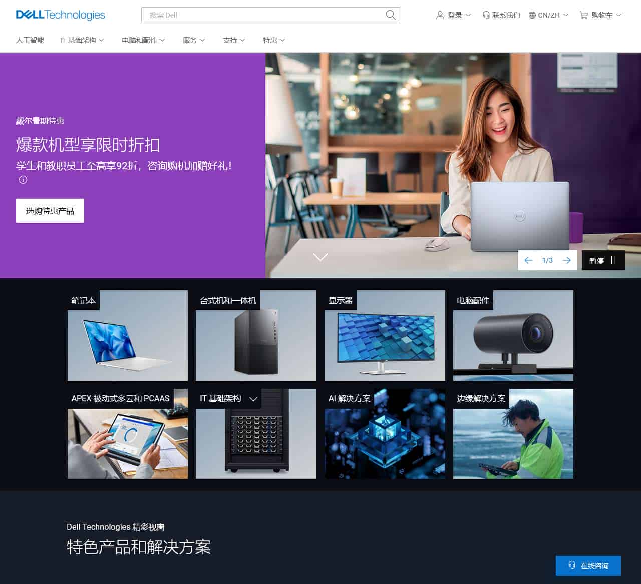 | 选购特惠产品 | 播放视频 探索 AI 选购特惠产品 了解游匣游戏本 选购 Latitude 了解 Latitude 选购 m16 R2 了解外星人游戏本 选购服务器 选购戴尔显示器 了解 PowerStore 了解详情 查看所有案例 |
