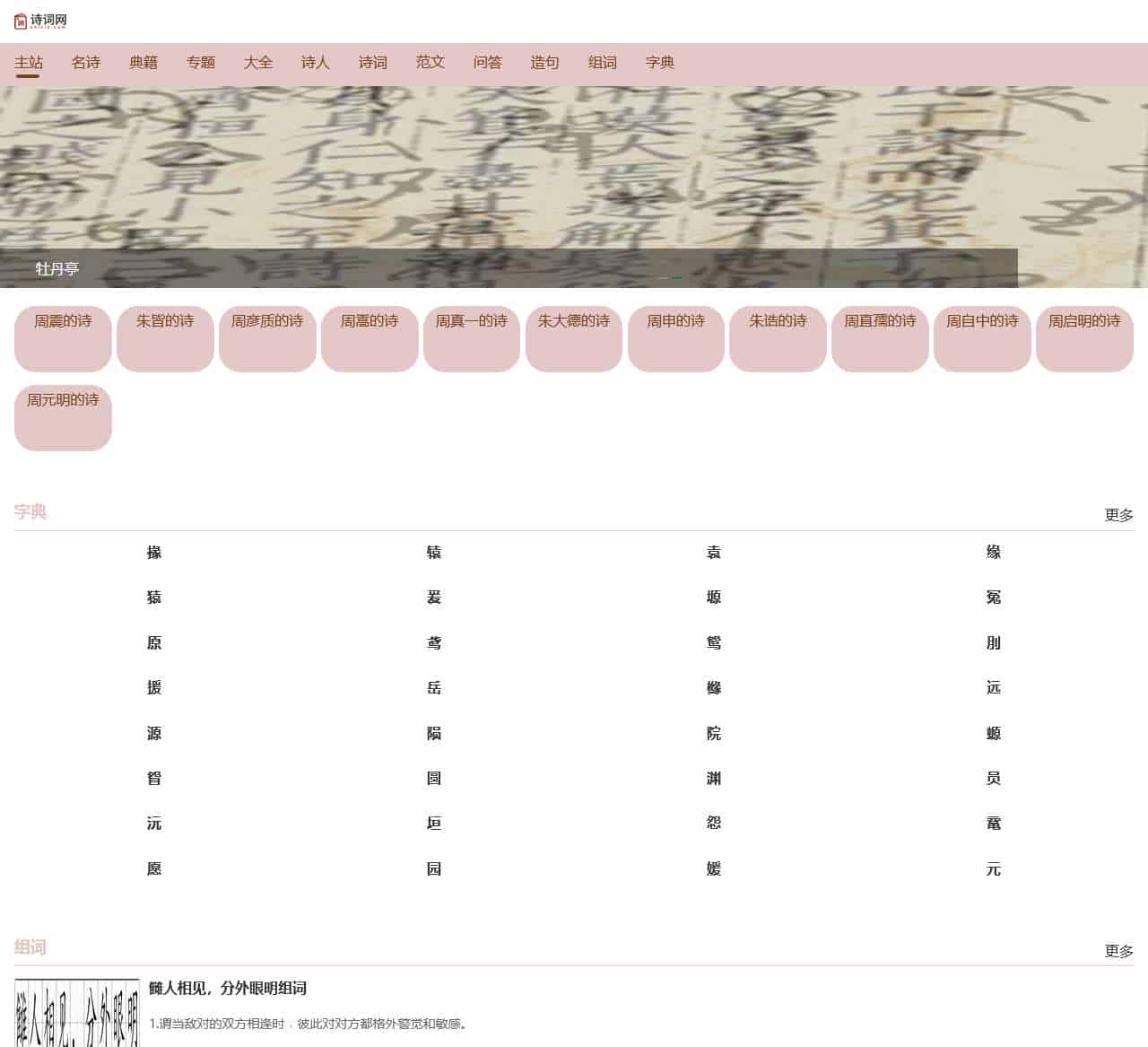 诗词网提供:诗词赏析,诗歌,诗词名句,唐诗三百首,古诗词大全;论语、史记、战国策等古文典籍译文;文言文、古文等文言文名篇翻译;诗词网打造中国最具影响力的开放式诗词网站和社区,为您提供经典的诗词、丰富的诗词服务。