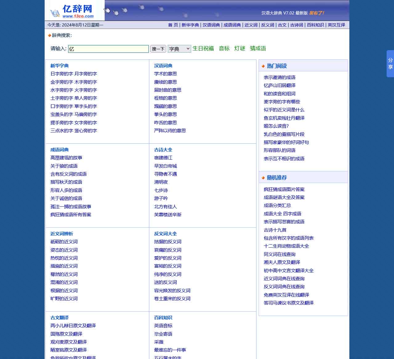 | 软件版本 | 汉语大辞典 V7.02 最新版 发布了! |