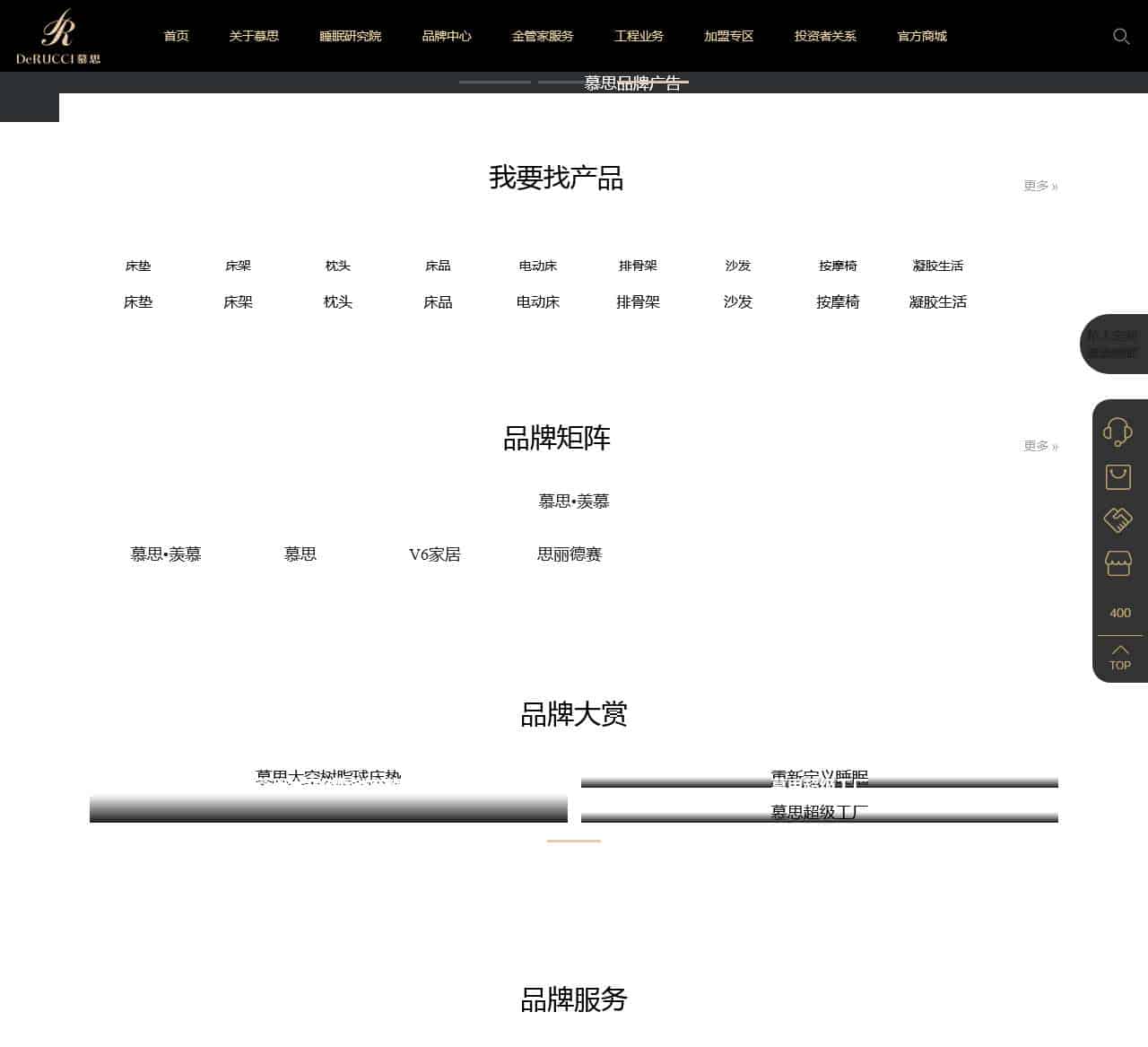 慕思DeRucci是全球十大床垫品牌,整合海内外健康睡眠资源,专业致力于人体健康睡眠研究,从事整套健康睡眠系统的研发、生产及营销,产品涵盖弹簧床垫、乳胶床垫、3d床垫以及床架、排骨架、床品、助眠产品等,全球拥有4000多家专卖店,远销10多个国家与地区。