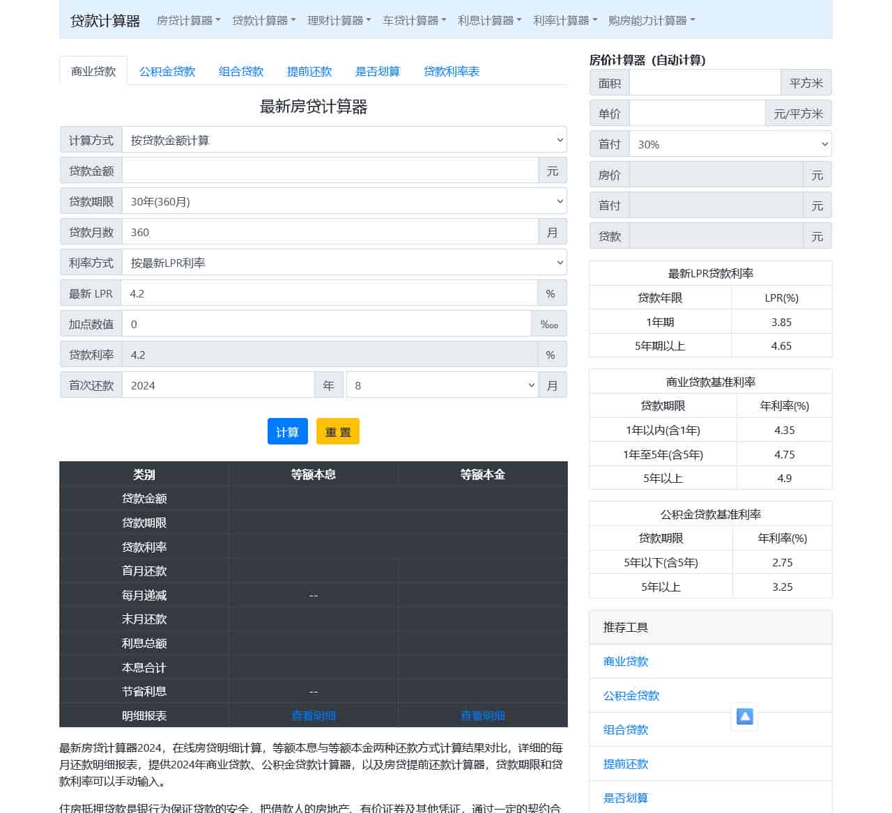 关于房贷计算器2024年最新版 公积金贷款计算器 等额本息计算器 商业贷款计算器_贷款计算器特别声明