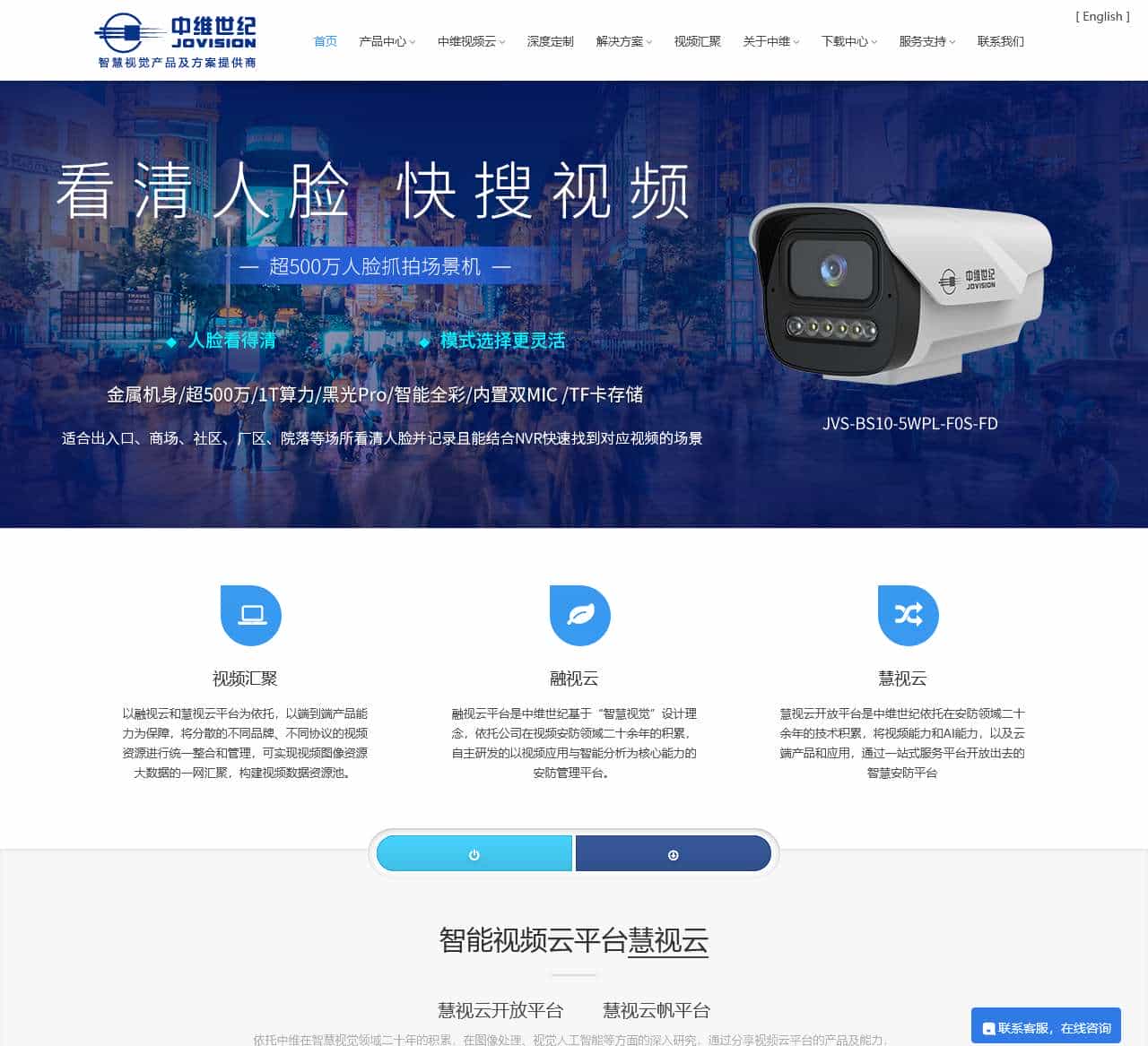 山东中维世纪科技股份有限公司(JOVISION)是一家智慧视觉产品及方案提供商。依托二十余年的研发与制造经验,目前已形成视频+AI为主的智慧视觉服务体系。服务和产品上,公司拥有慧视云、融视云、AICraft三大平台和完整的智慧视觉产品矩阵(包含智能摄像机、硬盘录像机、解码器、服务器、辅材等)。