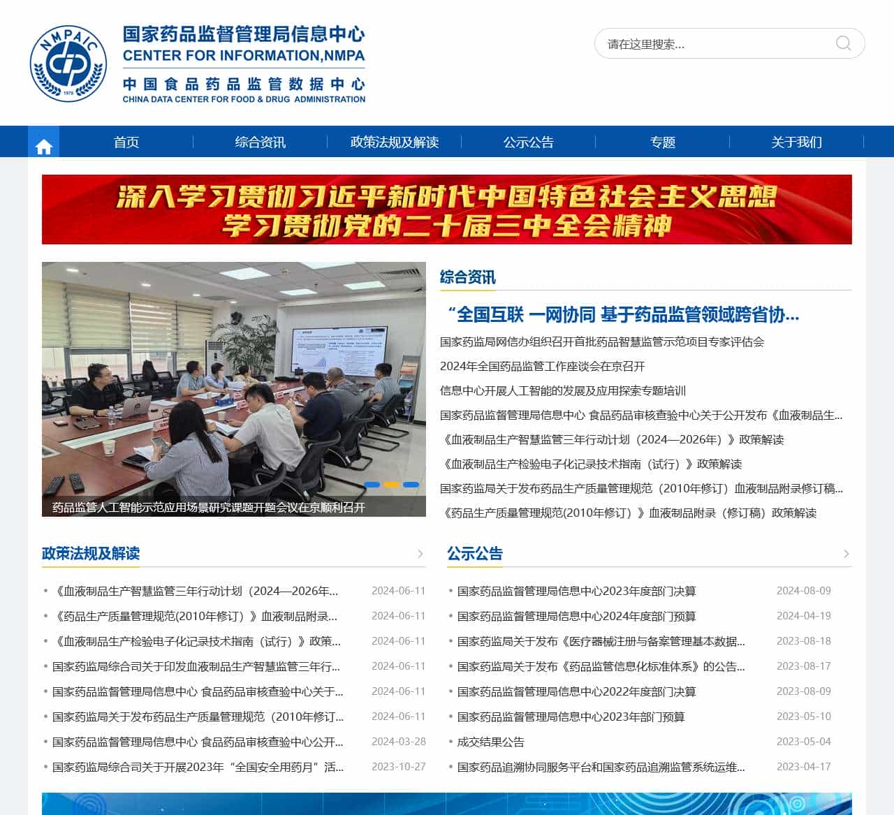 | 公示公告 | 国家药品监督管理局信息中心2023年度部门决算 国家药品监督管理局信息中心2024年度公开招聘拟聘人员公示 国家药品监督管理局信息中心2024年公开招聘面试公告 国家药品监督管理局信息中心2024年公开招聘笔试公告 国家药品监督管理局特殊药品检查中心2024年度公开招聘公告 国家药品监督管理局信息中心2024年度公开招聘公告 国家药品监督管理局信息中心2024年度部门预算 国家药监局关于发布《医疗器械注册与备案管理基本数据… |