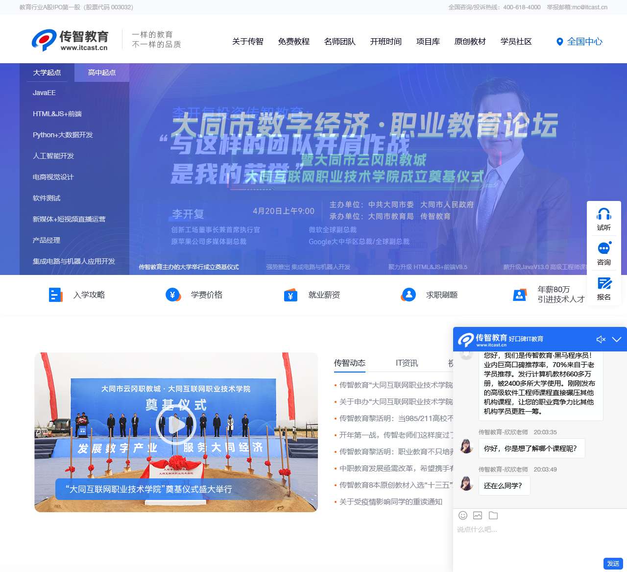 传智播客是一家专注于IT职业教育的机构。我们提供多种课程,包括JavaEE、HTML&JS+前端、Python+大数据开发、人工智能开发、电商视觉设计、软件测试、新媒体+短视频直播运营、产品经理等。以下是一些课程的简要介绍和相关信息: