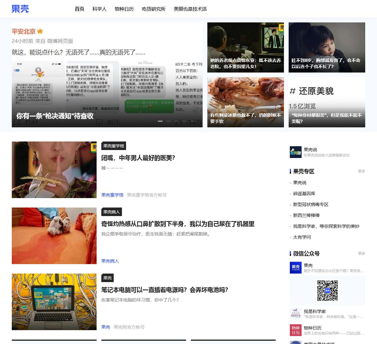 果壳网是一个科学、教育、生活类综合性网站,提供丰富多样的内容和资源。以下是果壳网首页的一些重大链接,可以协助用户了解更多有关科学、生活和健康的知识。