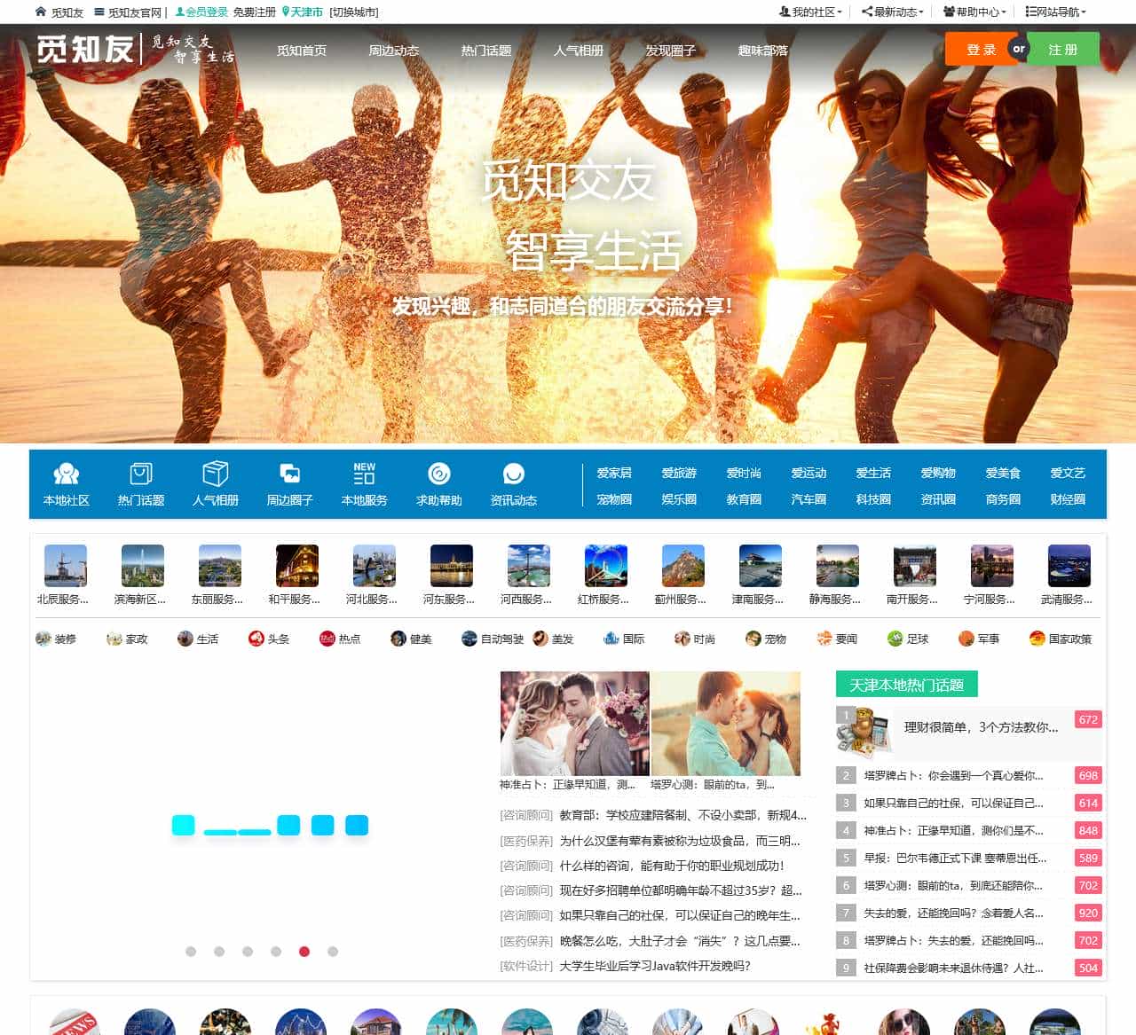| 最新动态 | 本地动态、热门话题、人气相册、发现圈子、圈子排行 |