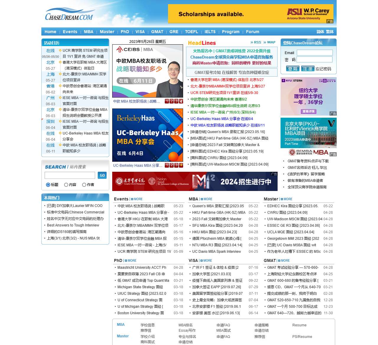 ChaseDream网站是一个专注于商学院和研究生申请的在线平台。我们提供各类活动、资讯和资源,协助学生准备MBA、Master和PhD的申请过程。以下是网站首页的a标签内容整理: