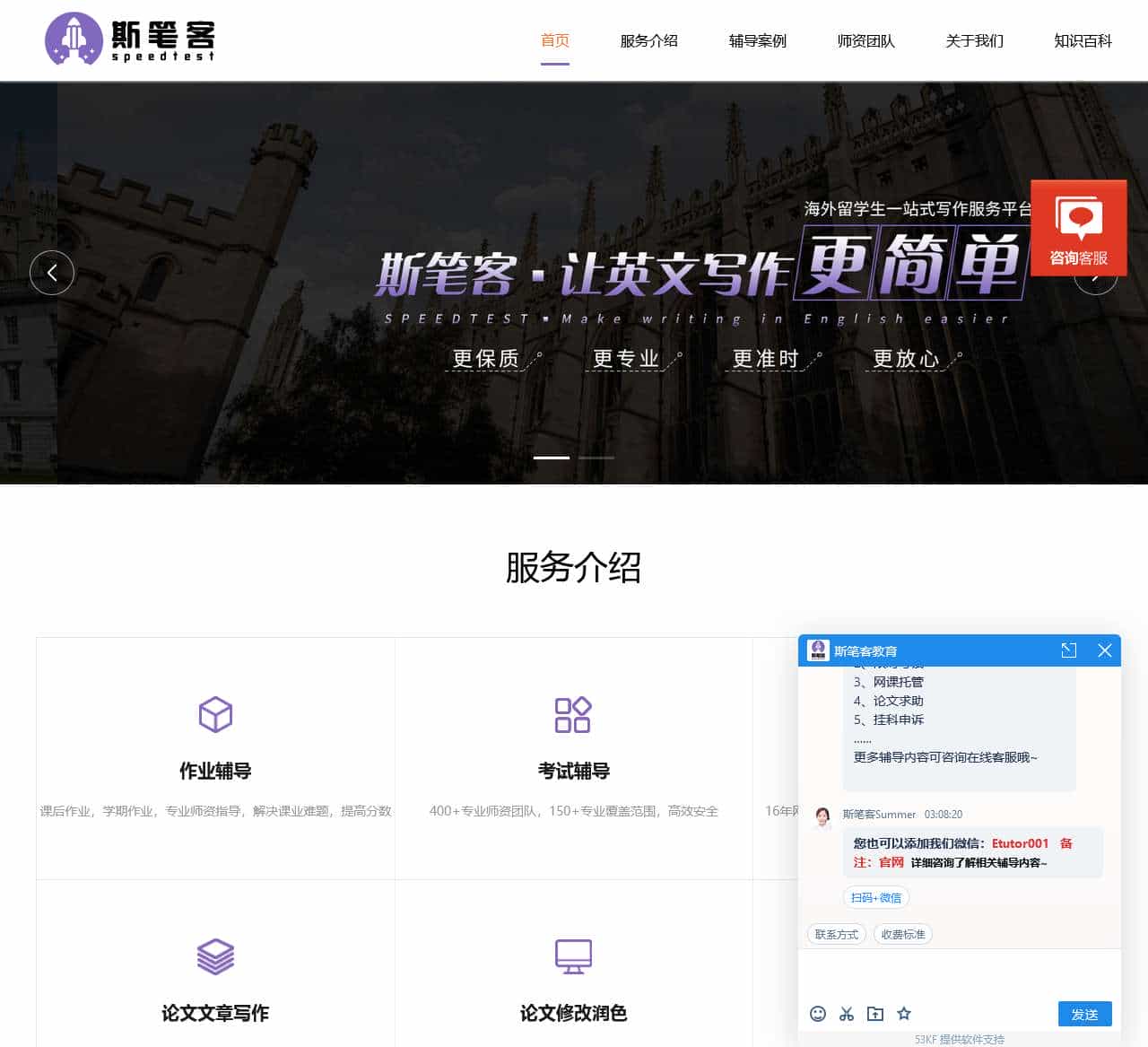 斯笔客教育为留学生提供在线论文作业一对一辅导,G5名校师资专业提供sci英文论文润色、英文润色、文章润色、英语proofreading,各种essay写作,课程大纲写作思路讲解,参考文献查重等服务。