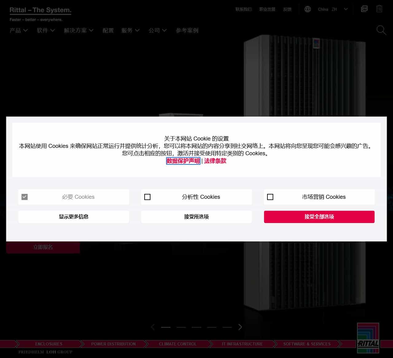| 跳转至页面顶部 | 产品 | 软件 | 解决方案 | 服务 | 关于我们 | 新闻 | 控制机柜 | 配电组件 | 温控系统 | 威图自动化系统 | IT基础设施 |