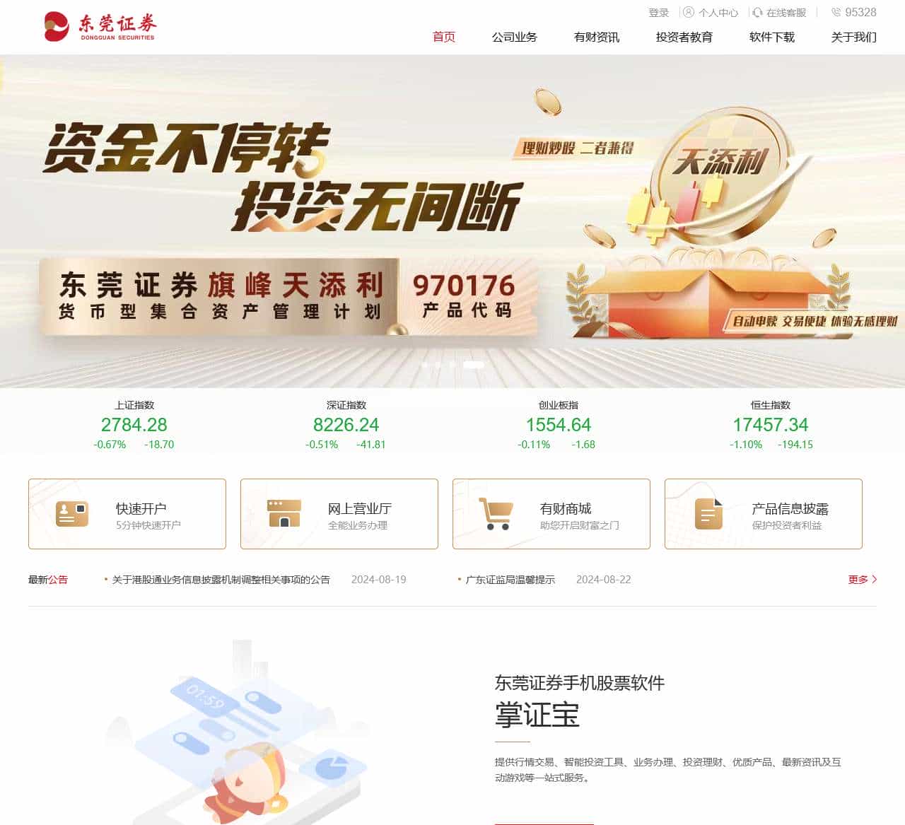 东莞证券是一家全国性综合类证券公司,全国首批承销保荐机构之一,为客户提供股票开户,证券开户,炒股开户流程,融资融券,智能投顾,财富小宝,资产管理,股票交易软件下载,投资者教育,股票入门知识等服务。东莞证券智能投顾产品——财富小宝,为你提供一站式智能便捷的理财服务。