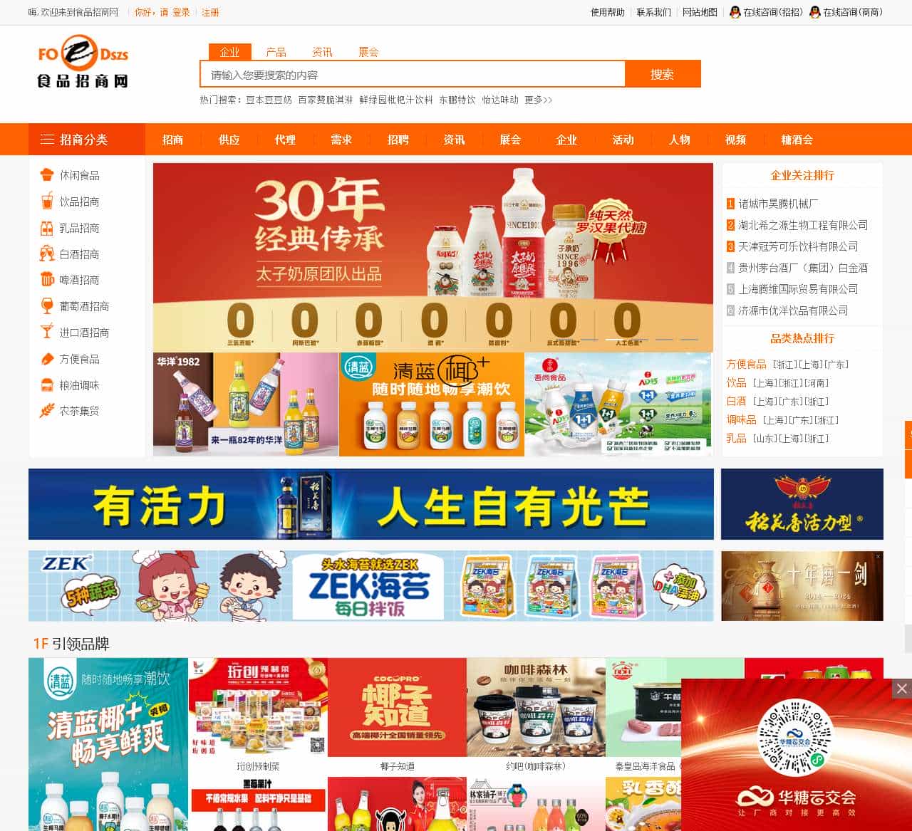食品招商网是专业的食品招商网、食品代理网站,汇集食品饮料招商代理、酒水招商代理、调味品招商代理等信息–满足一个行业的商务需求。