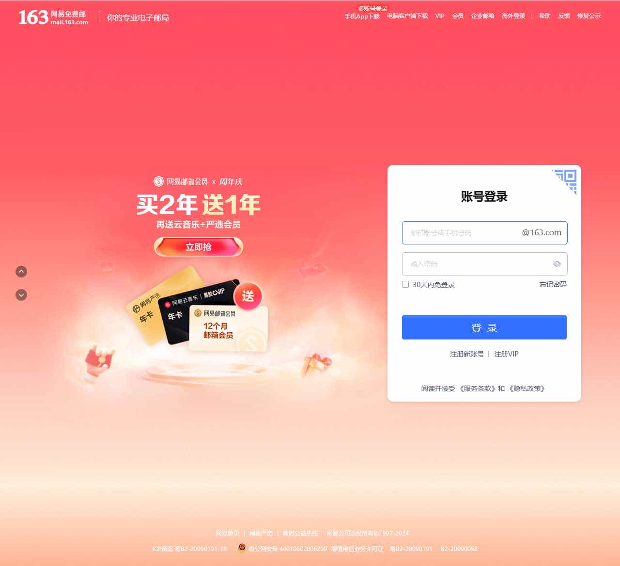 网易163免费邮箱,你的专业电子邮局,注册用户数超10亿,专业稳定安全。网易邮箱官方App“邮箱大师”帮您高效处理邮件,支持所有邮箱,并可在手机、Windows和Mac上多端协同使用。
