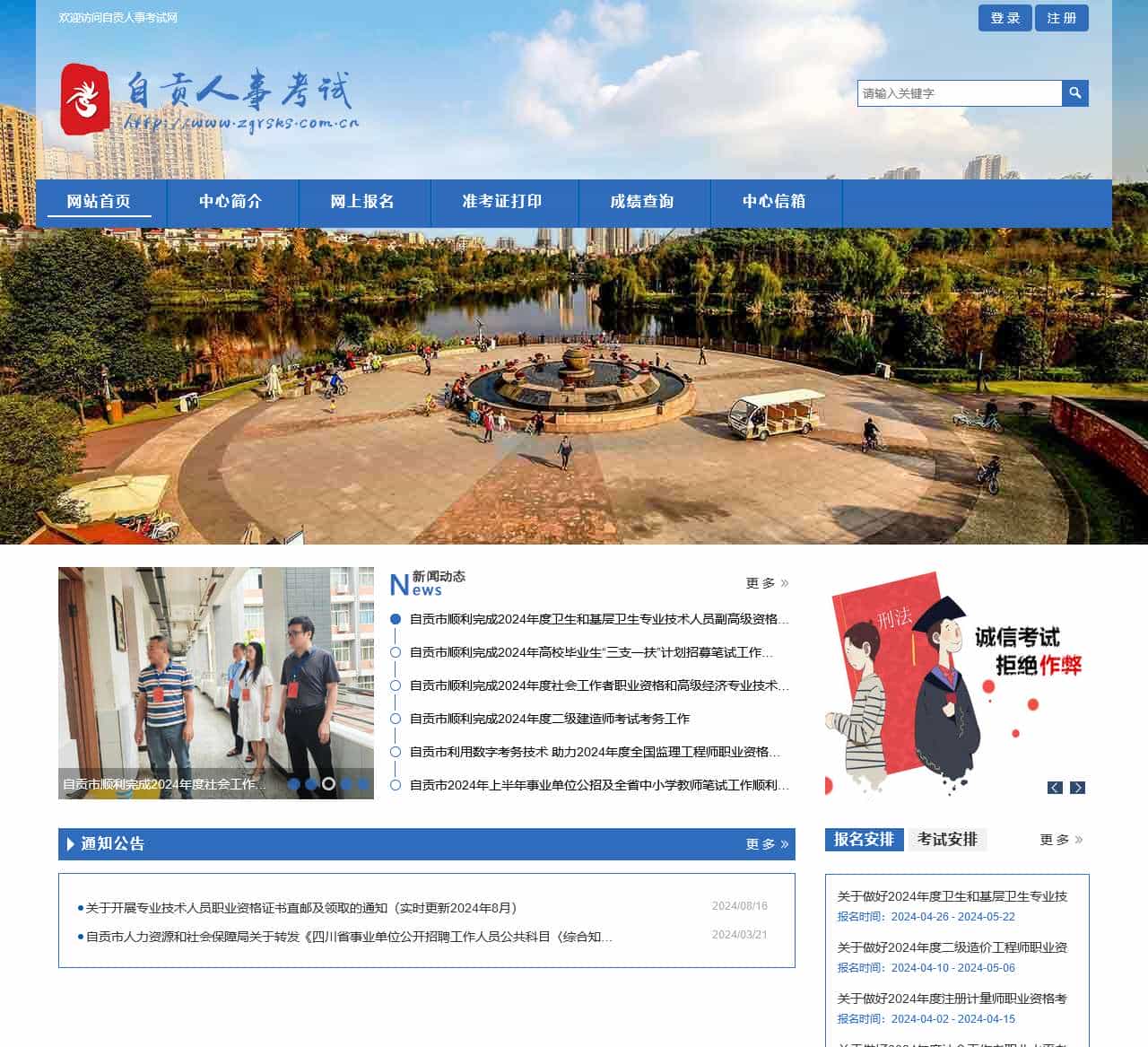 关于自贡人事考试网特别声明