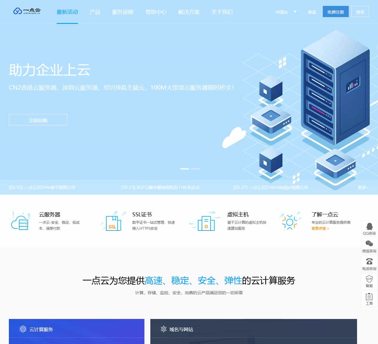深圳一点云专业从事服务器租用,GPU裸金属租用,机柜大带宽托管,高防IP服务器,VPS云主机,网站虚拟主机