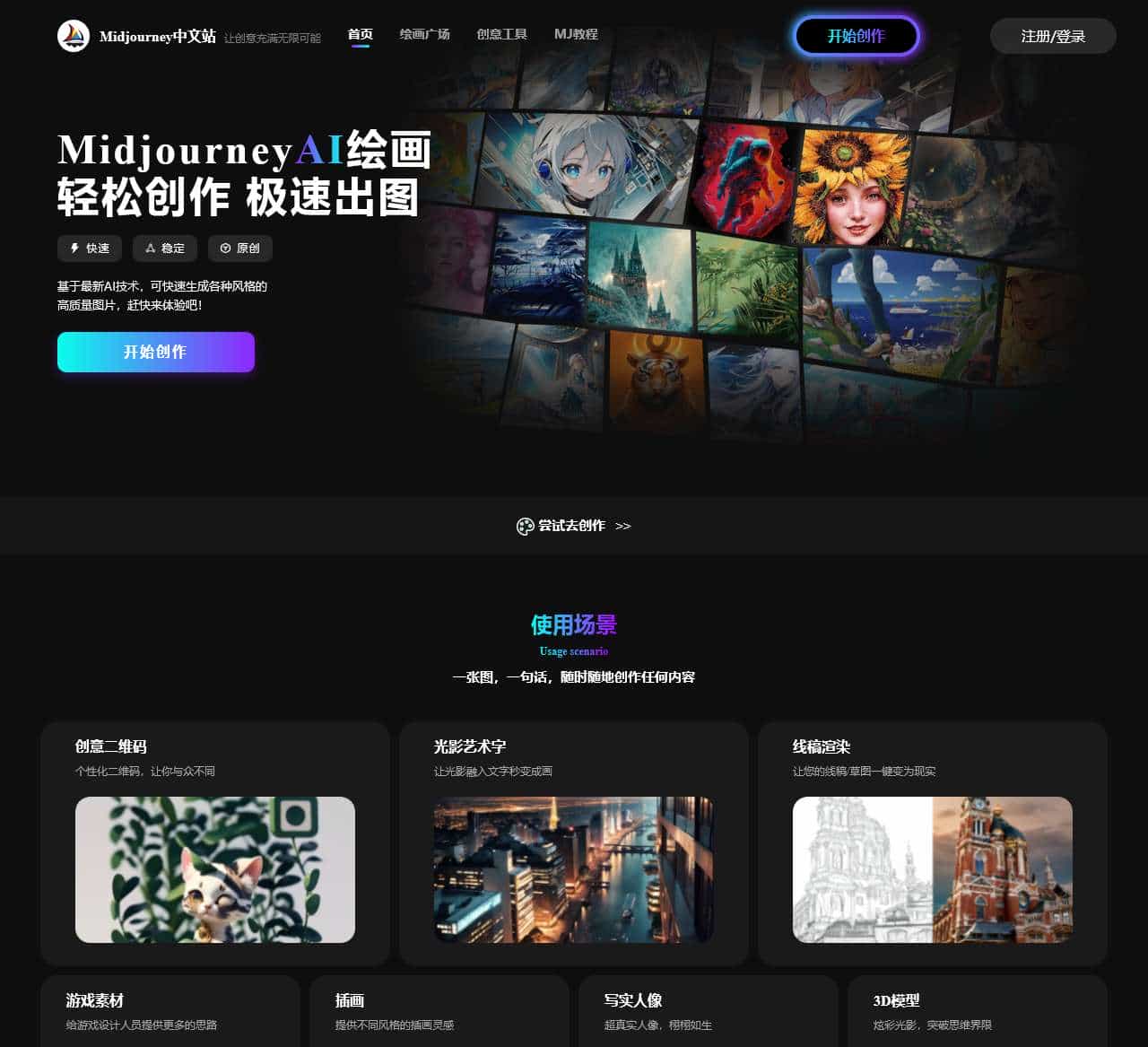 Midjourney中文站官网,MJ中文站,Midjourney AI让绘画如此简单,只需描述图片内容AI即可快速生成精美的图片,本站提供一站式Midjourney图片创作服务! ...