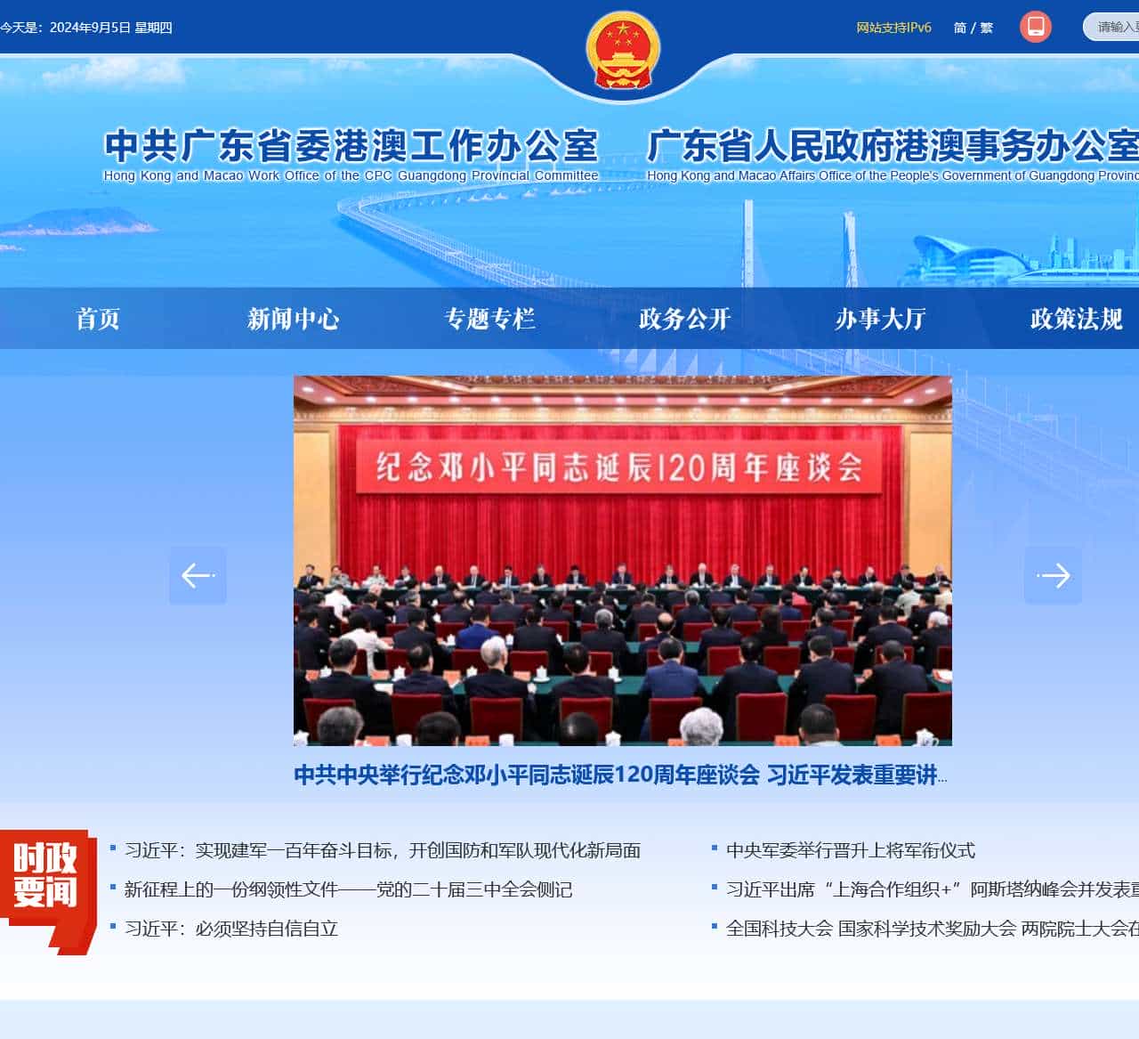 | 更多 | 全省港澳办主任会议在广州召开 | 陈丽文会见东亚银行联席行政总裁李民斌 | 黄锻炼出席“香港贸发局大湾区服务中心(广州)”乔迁新址仪式 | 陈丽文会见东亚银行联席行政总裁李民斌 | 黄锻炼出席“香港贸发局大湾区服务中心(广州)”乔迁新址仪式 | |