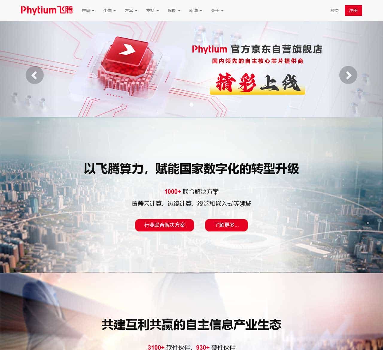 | 产品 | 高性能服务器CPU: 飞腾腾云S5000C, 飞腾腾云S2500, FT-2000+/64, FT-1500A/16 高效能桌面CPU: 飞腾腾锐D3000, 飞腾腾锐D2000, FT-2000/4, FT-1500A/4 高端嵌入式 CPU: 飞腾腾珑E2000, FT-2000A/2 飞腾套片 X100 |