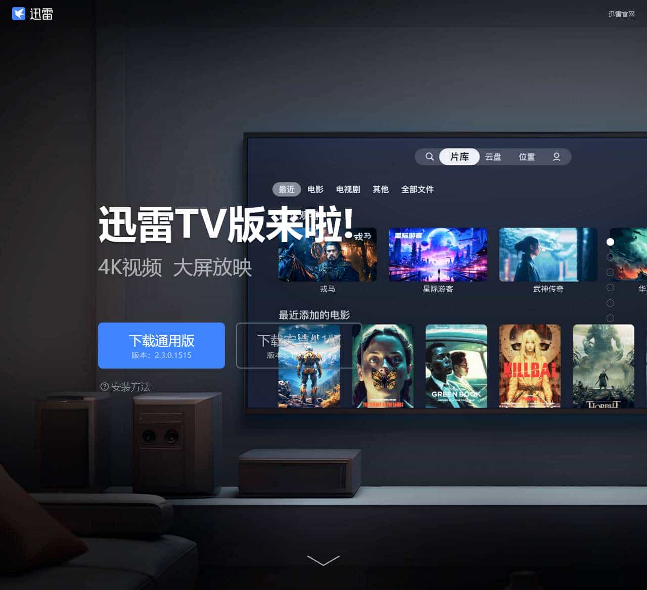 迅雷云盘TV版,适配电视、智慧屏等大屏设备,云盘添加内容,大屏畅快放映,支持NAS、电脑等多端内容发现与消费,投屏支持选择字幕与音轨。