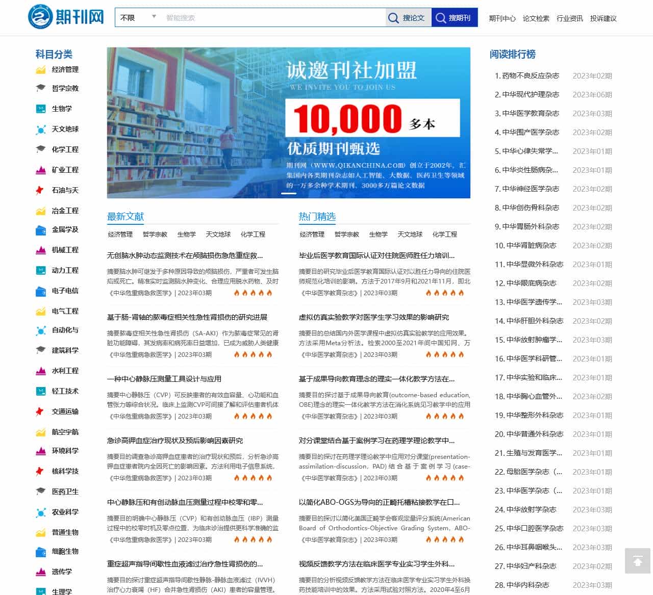 期刊网,中国期刊网诚邀各刊社免费入驻!期刊网,中国期刊网汇集国内各类期刊杂志如计算机期刊杂志、人工智能期刊杂志、大数据期刊杂志、医药卫生期刊杂志、工业技术期刊杂志、以及自然科学、农业科学和社会科学等领域的一万多余种科技学术期刊、3000多万篇的学术期刊论文数据库。中国期刊网提供期刊论文查询和检索,以及海量数据库资料免费在线阅读引证。