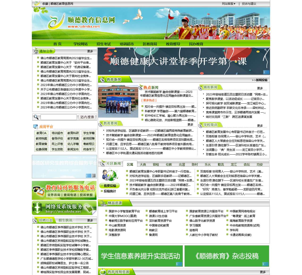 顺德教育信息网是顺德区教育局官方网站,提供全面的教育信息和服务。网站致力于为学生、家长和教育工作者提供及时、准确的教育资讯和资源。以下是顺德教育信息网的主要板块和内容: