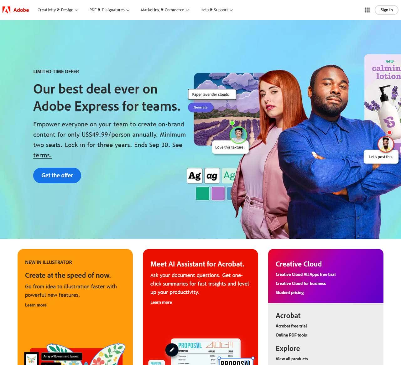 | Individuals | 20+ creative apps, Acrobat, and more |