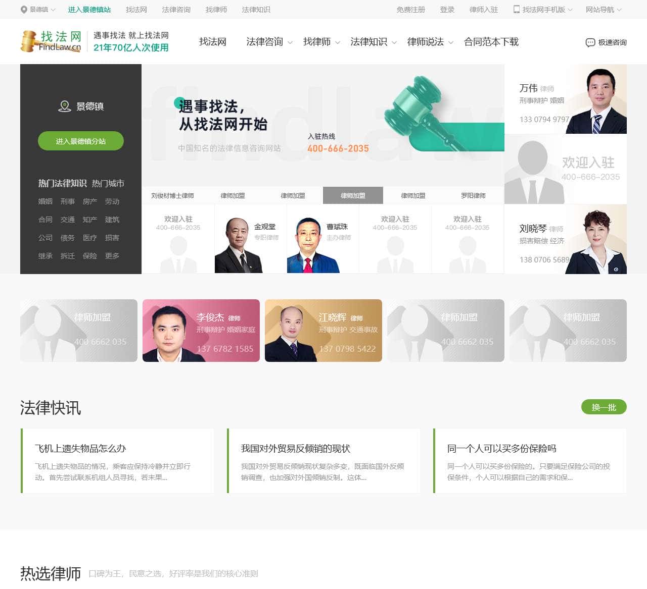 遇事找法,从找法网开始!21年法律信息咨询网站,是法律需求者寻求帮助、在线找律师的第一站。找法网拥有注册律师近25万,律师在线为您解决法律问题,每天创造了超10万次的法律咨询服务。