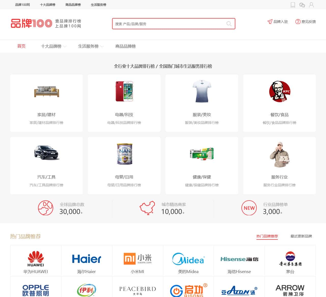 品牌100网提供全行业十大品牌排行榜,全品类商品品牌排行榜,全国主要城市本地生活服务排行榜查询服务,是国内专业的十大品牌排行榜大数据查询网站。