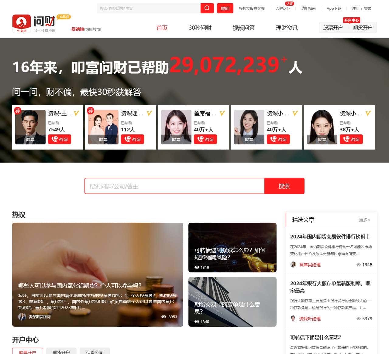 叩富问财,叩富同城理财官方财商服务平台,股票期货、保险基金理财前问一问,最快30秒应答,避免踩坑。专业、快速、1对1服务