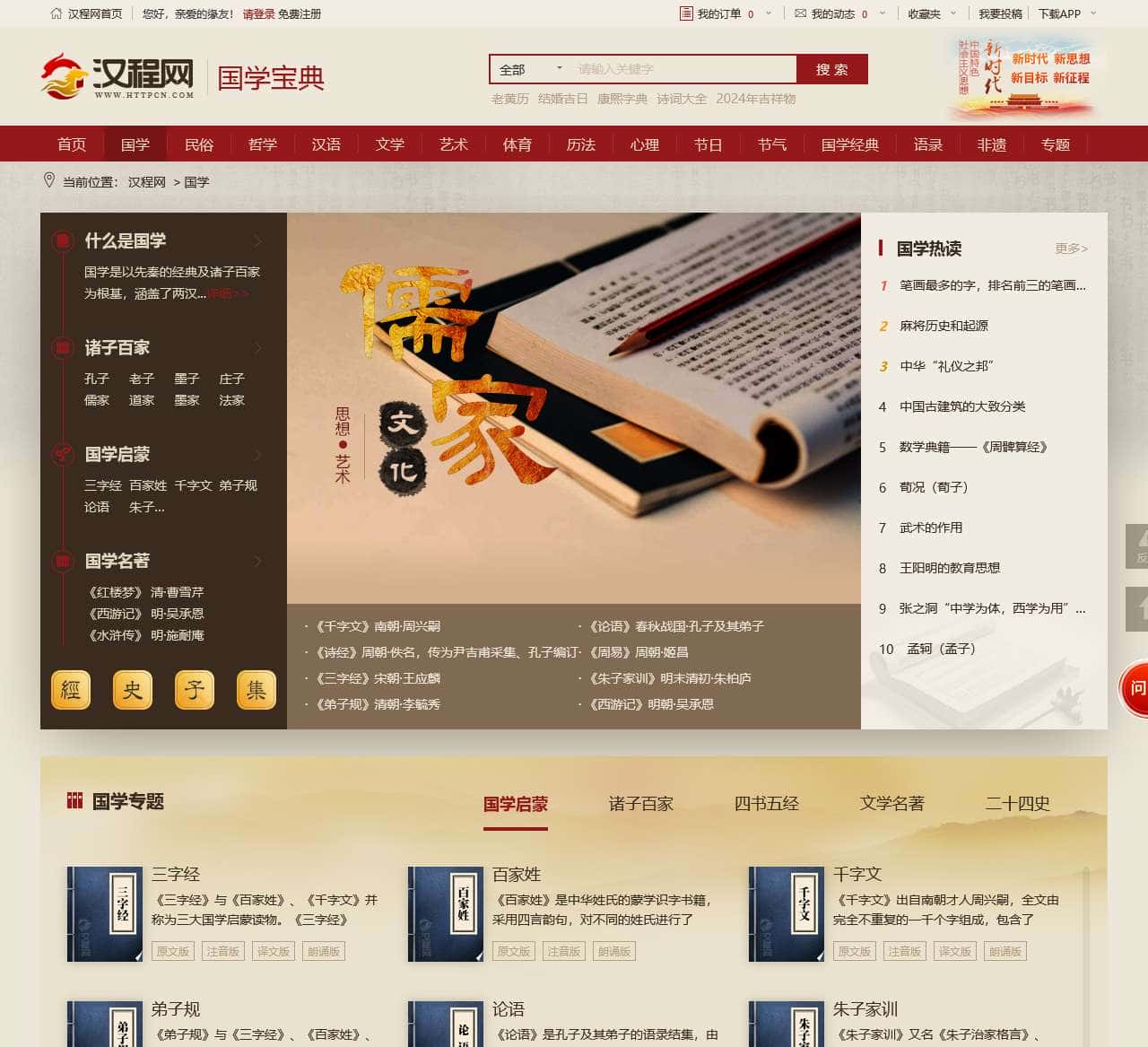 汉程国学——学国学从汉程网开始!涵盖国学知识、中华古籍、四库全书、诸子百家、国学经典读物、少儿国学启蒙等,提供原文/拼音/译文/解读以及学习资源等。