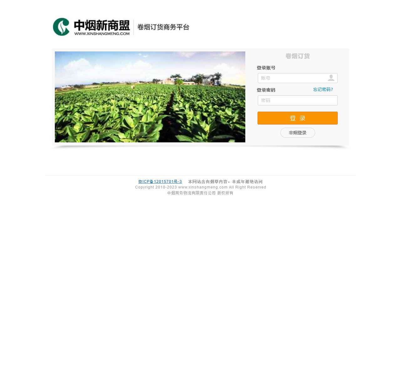 网站名称:中烟新商盟卷烟订货平台