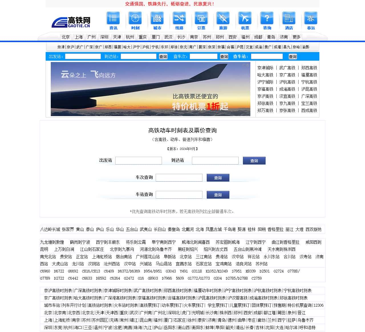 高铁网【高铁时刻表】查询:提供最新高铁时刻表查询、最新高铁票价查询,2024年最新高铁时刻表及票价查询,高铁动车时刻表查询动车票,高铁票查询网上订票、在线预订动车票,高铁车次表查询、列车时间表、中国高速铁路线路图、火车站查询,全国城际铁路客运专线高铁列车时刻表、最新动车时刻表及票价查询动车票。
