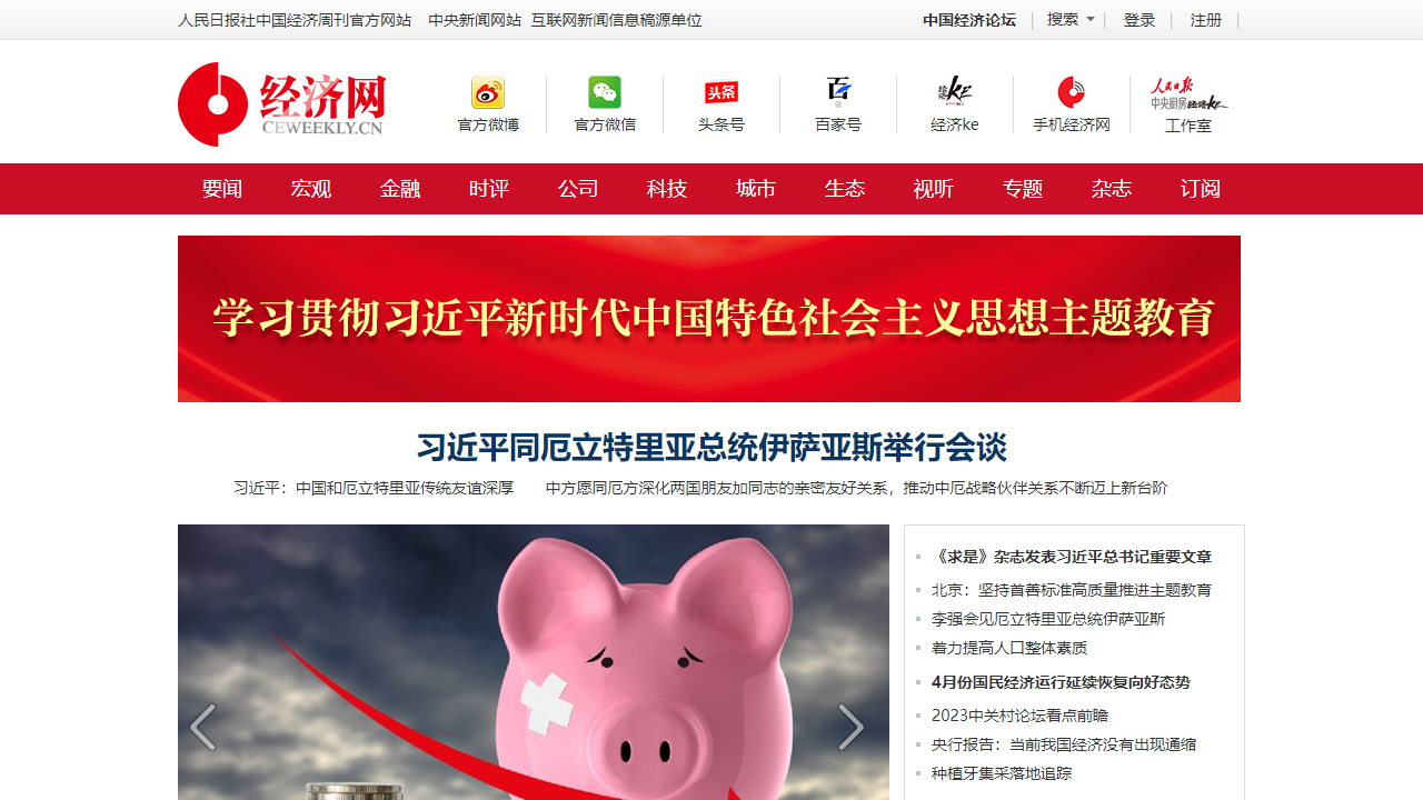 在要闻板块,经济网报道了各类重大新闻,如习近平主席会见厄立特里亚总统、国民经济运行情况、中关村论坛看点前瞻等,涵盖了国内外重大事件和经济动态。