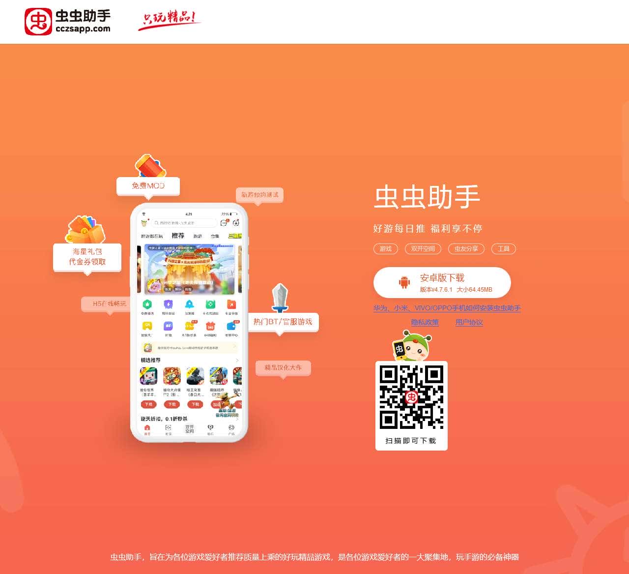 虫虫助手为大家提供海量安卓手机游戏,包含大型mod单机手游,热门bt版gm特权网络手游,H5在线游戏,新游测试预约等,还有丰富免费礼包代金券激活码领取.玩精品手游,用虫虫助手.