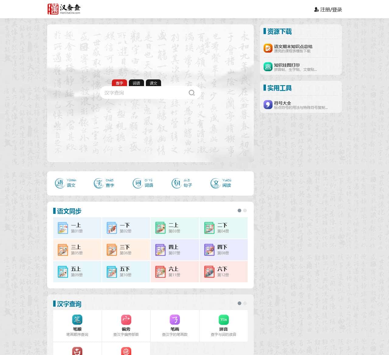 汉查查网HanChaCha.com,一个专注汉语和语文教学资源的网站。提供部编版语文同步教学资料,汉字、词语和成语、句子在线查询,古今文学作品免费在线阅读。汉查查网是汉语学习与教学的好助手。
