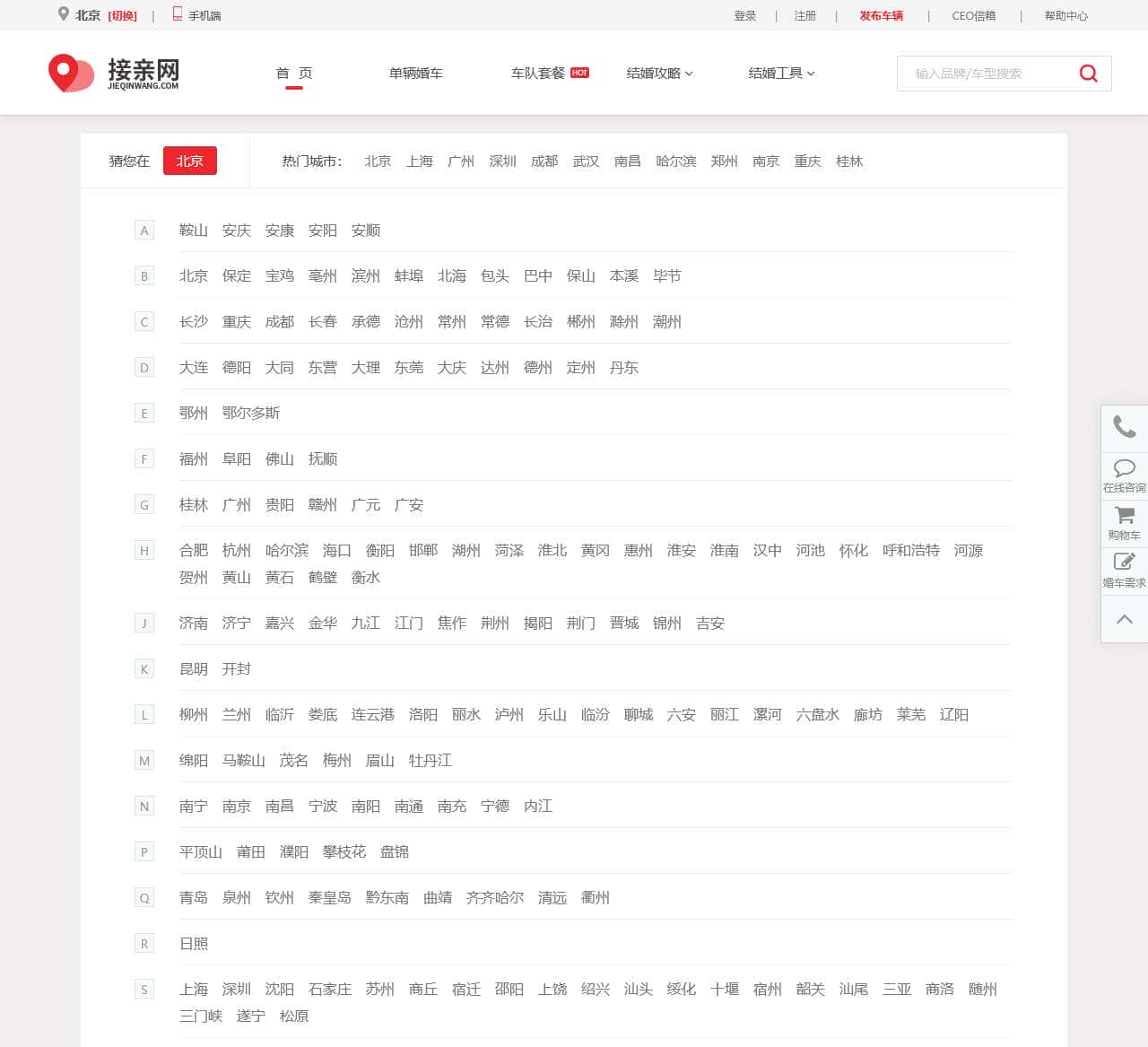 接亲网(jieqinwang.com)是全国专业的婚庆租车平台,提供婚庆车队价目表和婚车装饰、婚车图片供参考。个性婚车租赁、平台担保交易,带给您高性价比的租婚车体验。