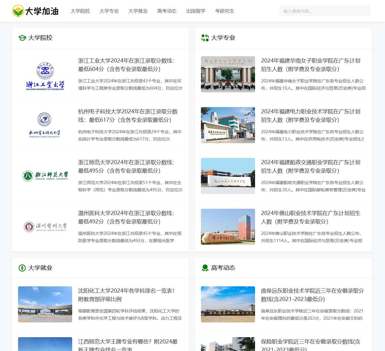 大学加油网网提供大学就业、大学院校、大学专业、大学排名、高考动态、出国留学、考研究生等内容,免费为高中和大学生服务。