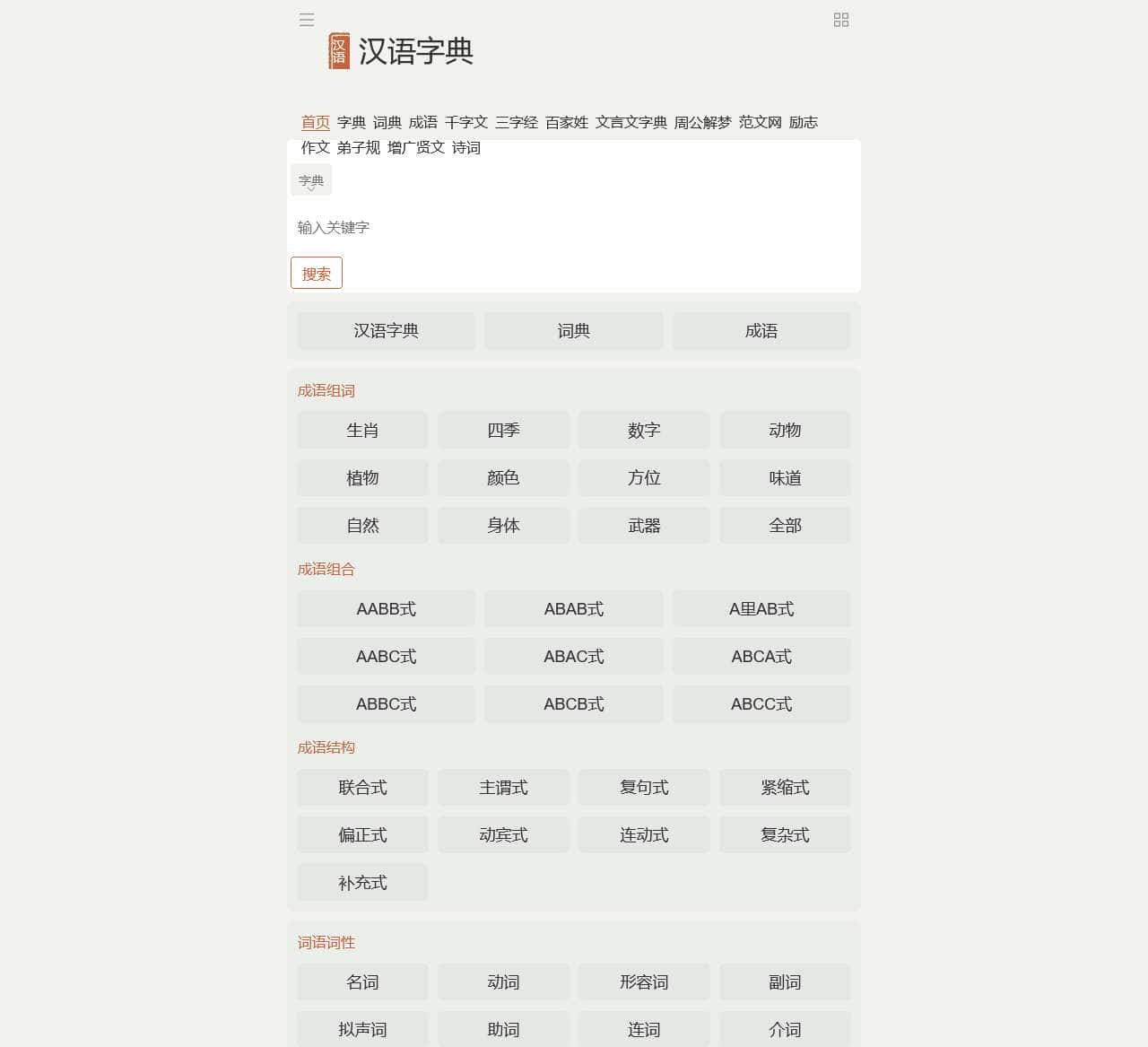 汉语大全为广大汉语学习者免费提供在线新华字典、汉语词典、成语词典、田字格生成等服务。