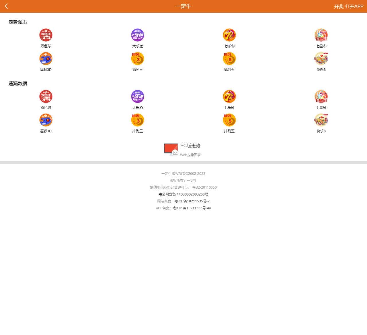| PC版走势 | Web走势图表 | ||||||||