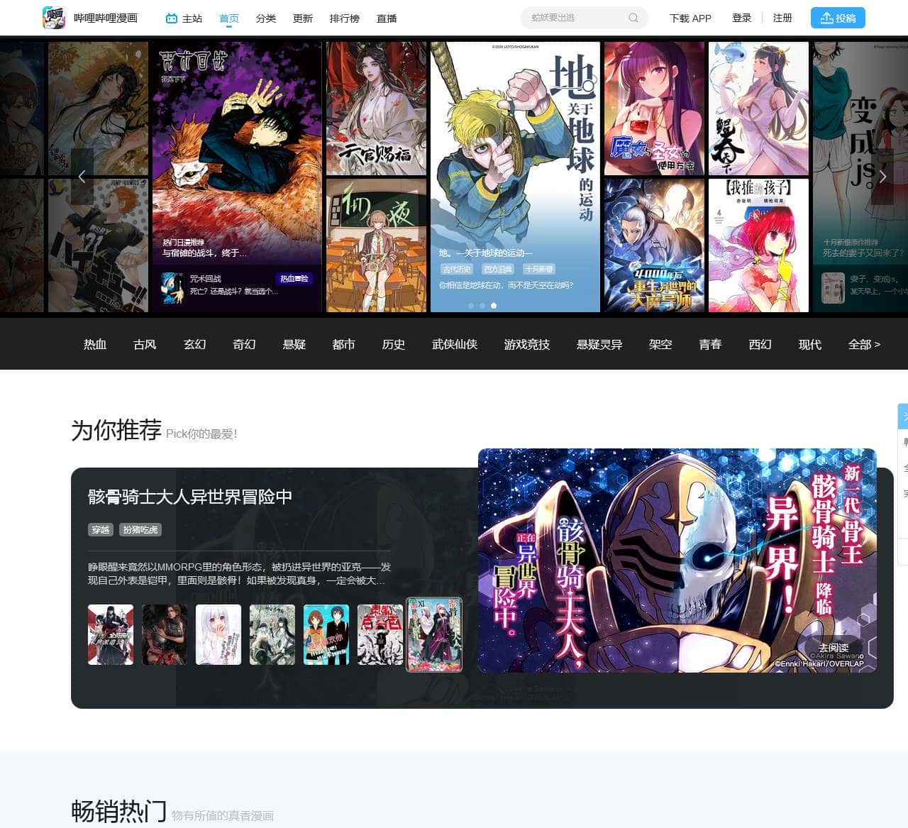 哔哩哔哩正版漫画阅读平台, 海量官方漫画连载在线观看, 二次元动漫迷的追漫神器, 热门漫画: 海贼王, 五等分的新娘, 约定的梦幻岛, 辉夜大小姐想让我告白 ~天才们的恋爱头脑战~, 关于我转生变成史莱姆这档事, 我的英雄学园, 修真聊天群, 乔乔的奇妙冒险, 斗罗大陆, 我家大师兄脑子有坑, 一拳超人, 灵能百分百, 铳梦等