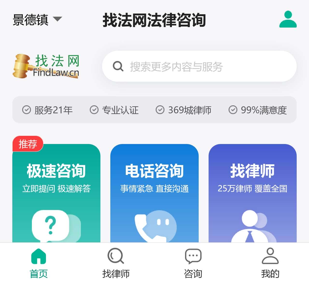遇事找法,从找法网开始!21年法律信息咨询网站,是法律需求者寻求帮助、在线找律师的第一站。找法网拥有注册律师近25万,律师在线为您解决法律问题,每天创造了超10万次的法律咨询服务。